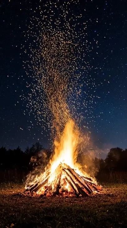 Crackling flames.